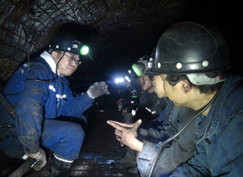 朱家道與15910大學(xué)生采煤隊(duì)職工在井下座談 |