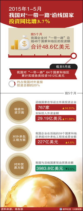 來自商務(wù)部的統(tǒng)計顯示,前五個月,我國與沿線國家雙邊貿(mào)易總額3983.8億美元,占同期我國進出口總額的25.8%;沿線國家在華實際投入外資金額29.19億美元,占全國吸收外資總額的5.42%;截至今年5月底,我國對“一帶一路”64個國家/地區(qū)累計實現(xiàn)各類投資1612億美元,約占我國對外直接投資總額的20%。此外,長江沿線省份一季度依然保持較高經(jīng)濟增速,絕大部分地區(qū)超過全國水平。