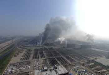 ??? 8月13日從爆炸地點(diǎn)附近的高層拍攝的現(xiàn)場(chǎng)。記者 岳月偉 攝 |