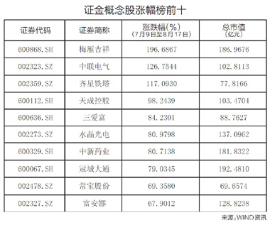 熱捧 “證金概念股”顯現(xiàn) 平均漲幅超五成