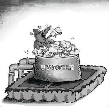 除了惠農(nóng)示范工程,近年來國家還推出了糧食補(bǔ)貼、農(nóng)機(jī)補(bǔ)貼、病害豬無害化處理專項(xiàng)資金、扶貧培訓(xùn)專項(xiàng)資金、電影下鄉(xiāng)專項(xiàng)資金等專項(xiàng)補(bǔ)貼或資金。原本為保障和改善民生的惠民政策,在執(zhí)行過程中,卻被一些腐敗分子鉆了空子,惠民資金和補(bǔ)貼被虛報(bào)冒領(lǐng)、侵吞挪用的現(xiàn)象屢見不鮮。