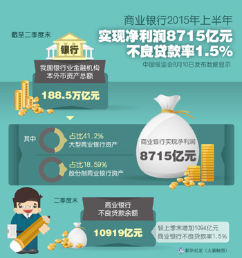 從銀監(jiān)會(huì)公布的數(shù)據(jù)顯示,截至今年二季度末,商業(yè)銀行的不良貸款余額達(dá)10919億元,較上年末增加了2493億元,逼近2014年全年不良貸款的增量,其中16家上市銀行不良貸款增量接近2000億元;商業(yè)銀行平均不良貸款率升至1.5%,其中上市銀行平均不良貸款率亦超過(guò)了1%。