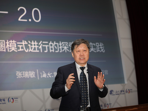 ????海爾集團(tuán)董事局主席、首席執(zhí)行官?gòu)埲鹈?月19日在由海爾集團(tuán)和經(jīng)濟(jì)參考報(bào)聯(lián)合主辦的“人單合一雙贏模式探索十周年暨第二屆海爾商業(yè)模式創(chuàng)新全球論壇”上表示,海爾的“人單合一雙贏”模式提出已有十年時(shí)間,現(xiàn)在進(jìn)入2.0階段,即海爾將建立一個(gè)共創(chuàng)共贏的平臺(tái),顛覆原來(lái)的傳統(tǒng)模式,實(shí)現(xiàn)企業(yè)平臺(tái)化,用戶(hù)個(gè)性化和員工創(chuàng)客化。