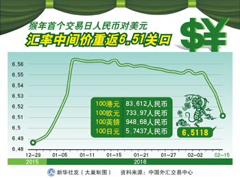 春節(jié)后的第一個交易日,人民幣對美元就強勢上漲。15日,中國外匯交易中心公布的人民幣對美元匯率中間價報6.5118,較前一交易日上漲196個基點,漲幅達0.30%。與此同時,在岸人民幣兌美元即期匯率當日收盤價報報6.4944,較上個交易日收盤價大漲751基點,創(chuàng)下2005年7月匯改以來的最大單日漲幅。