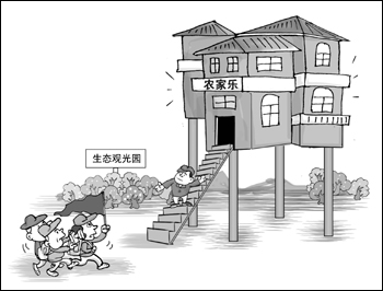 經(jīng)過多年投入,項(xiàng)目已成熟,游客接待量持續(xù)增長(zhǎng),但張?zhí)煨绿寡?,自己心里總是懸吊吊的、不踏?shí),原因就在于觀光園以臨時(shí)生產(chǎn)用房和農(nóng)業(yè)附屬設(shè)施建設(shè)的名義,搞起了主題餐廳和住房,打了用地政策“擦邊球”。