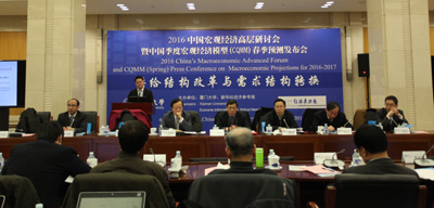 2月25日,廈門大學(xué)與新華社經(jīng)濟(jì)參考報(bào)社在京聯(lián)合舉行“中國(guó)宏觀經(jīng)濟(jì)高層研討會(huì)暨中國(guó)季度宏觀經(jīng)濟(jì)模型(CQMM)2016春季預(yù)測(cè)發(fā)布會(huì)”。? 本報(bào)記者 王皓然/攝?