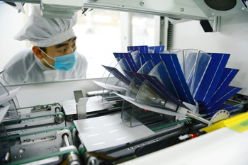 中國物流與采購聯合會、國家統(tǒng)計局服務業(yè)調查中心近日發(fā)布的2016年2月中國制造業(yè)采購經理指數(PMI)為49.0%,比上月下降0.4個百分點。圖為河北保定英利綠色能源控股有限公司的員工在車間生產線上工作。 記者 朱旭東/攝