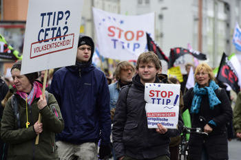 美國總統(tǒng)奧巴馬4月底訪問德國期間,就遭遇了很多德國人的強烈抗議。德國副總理、社會民主黨領導人加布里爾直言不諱地表示,他感覺奧巴馬是來“推銷美國貨的”,“TTIP就是為了讓歐洲人買盡可能多的‘美國制造’”。加布里爾表示,假使美國不讓步,德國就不會簽署TTIP。