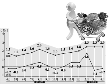 食品價格的波動在今年春季CPI的上漲中扮演了關(guān)鍵的角色。今年2月至4月,豬肉價格同比分別上漲25.4%、28.4%和33.5%,鮮菜價格同比分別上漲30.6%、35.8%和22.6%。但是從環(huán)比來看,自3月份起,鮮菜價格開始下滑,4月份這種趨勢進(jìn)一步加劇。國家統(tǒng)計局城市司高級統(tǒng)計師余秋梅表示,4月份CPI環(huán)比下降0.2%,主要就是受到了鮮菜價格下降較多的影響。4月份正值春夏之交,應(yīng)季鮮菜大量上市,鮮菜價格環(huán)比下降12.5%,影響CPI環(huán)比下降約0.43個百分點。