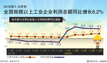 國家統(tǒng)計局7月27日發(fā)布的工業(yè)企業(yè)財務(wù)數(shù)據(jù)顯示,1至6月份,規(guī)模以上工業(yè)企業(yè)利潤同比增長6.2%,增速比1至5月份回落0.2個百分點,主要受3月份較高增長的影響。其中,6月份利潤同比增長5.1%,增速比5月份加快1.4個百分點。專家表示,6月份工業(yè)企業(yè)利潤增長加快,主要受工業(yè)生產(chǎn)和銷售增長有所加快,產(chǎn)品價格降幅繼續(xù)收窄影響,工業(yè)企業(yè)降本減負(fù)效果顯現(xiàn),庫存壓力繼續(xù)減緩。但是,制約企業(yè)效益向好的不利因素仍然存在,目前的利潤增長不夠均衡,新增利潤集中于少數(shù)行業(yè),未來整體工業(yè)生產(chǎn)難言樂觀。