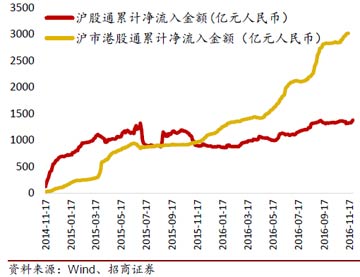 深港通首日波瀾不驚,成交量整體較為有限。業(yè)內(nèi)較為關(guān)心的,則是開通之后南北資金的流向問題。公開資料顯示,自2014年11月17日滬港通開通之后,滬股通資金流入情況經(jīng)過了三個階段。開通之初資金明顯流入,2015年7月3日達(dá)到最高點(diǎn),隨后資金明顯流出,2016年2月25日達(dá)到最低點(diǎn);此后資金又逐漸緩慢回流,目前累計資金凈流入接近1400億元人民幣,占滬股通總額度的比例不足一半;滬市港股通則一直處于流入的態(tài)勢,至2016年11月中期達(dá)3000億元人民幣左右。