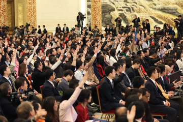 ??? 3月15日,國務(wù)院總理李克強(qiáng)在北京人民大會堂與中外記者見面,并回答記者提問。這是記者在舉手提問。新華社記者 金立旺 攝? |