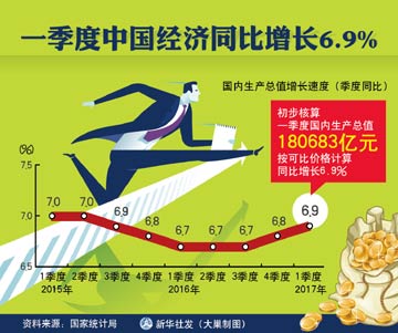 國家統(tǒng)計局17日公布了最新的國民經(jīng)濟運行數(shù)據(jù)。數(shù)據(jù)顯示,今年一季度,國內生產總值(GDP)為180683億元,按可比價格計算,同比增長6.9%。從投資、工業(yè)生產、進出口等多項數(shù)據(jù)來看,一季度增長超出市場預期。