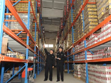 就在辦案人員進(jìn)入林森公司辦公地點(diǎn)的同時(shí),由海關(guān)緝私民警大司帶領(lǐng)的另一組人馬也費(fèi)盡周折趕到林森公司倉(cāng)庫(kù)。行動(dòng)當(dāng)日,受大霧影響,進(jìn)京高速公路全線關(guān)閉。大司和同事們凌晨出發(fā),在能見(jiàn)度不到20米的京津公路上艱難前行,歷經(jīng)6個(gè)多小時(shí)終于在行動(dòng)前準(zhǔn)時(shí)到達(dá)預(yù)定位置,順利查扣全部涉案貨物。經(jīng)清點(diǎn),他們共查封兩個(gè)涉案?jìng)}庫(kù),查扣酒水類商品68萬(wàn)余瓶(箱)。而就在大司他們清點(diǎn)查扣貨物的時(shí)候,倉(cāng)庫(kù)附近接連出現(xiàn)過(guò)數(shù)輛可疑貨柜車。在后續(xù)對(duì)倉(cāng)庫(kù)人員的詢問(wèn)中得知,原來(lái)林森公司老板本來(lái)安排當(dāng)日緊急運(yùn)貨,只是由于大霧的因素,運(yùn)貨車輛沒(méi)能按時(shí)到達(dá)倉(cāng)庫(kù)。