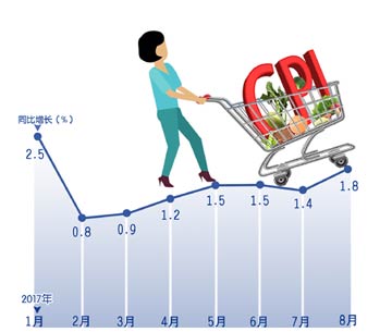 統(tǒng)計(jì)局?jǐn)?shù)據(jù)顯示,8月份,CPI環(huán)比上漲0.4%,同比上漲1.8%;PPI環(huán)比上漲0.9%,同比上漲6.3%。