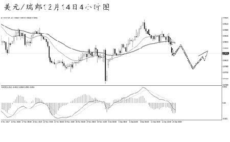 ▲美元兌瑞郎小幅反彈后再度發(fā)起下調。經過短線的下調,MACD重新進入到空頭動能充盈的階段。短線下調力度迅猛但幅度有限,可謹慎看空,但需隨時謹防匯價重新發(fā)起上攻風險。
