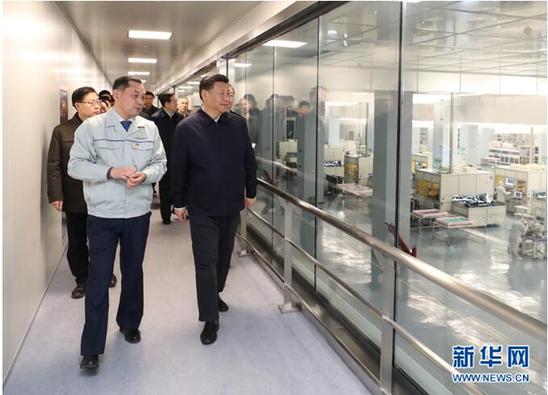 這是2月11日下午,習(xí)近平在成都中電熊貓顯示科技有限公司考察。 新華社記者 謝環(huán)馳 攝