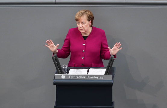 3月21日,在德國(guó)柏林,德國(guó)總理默克爾在聯(lián)邦議院發(fā)表德國(guó)新政府成立后的第一個(gè)政府聲明。