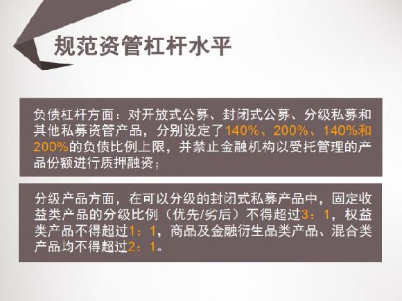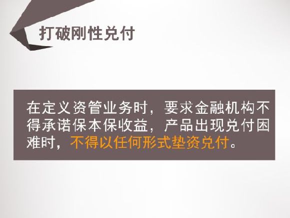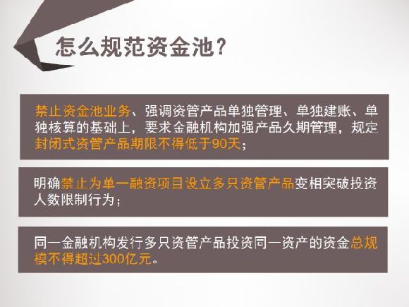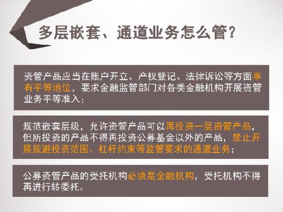 該負(fù)責(zé)人說,資管新規(guī)的總體思路是按照資管產(chǎn)品的類型制定統(tǒng)一的監(jiān)管標(biāo)準(zhǔn),對(duì)同類資管業(yè)務(wù)作出一致性規(guī)定,實(shí)行公平的市場準(zhǔn)入和監(jiān)管,最大程度地消除監(jiān)管套利空間,為資管業(yè)務(wù)健康發(fā)展創(chuàng)造良好的制度環(huán)境。