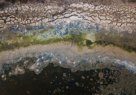 圖為2018年3月30日在江蘇連云港燕尾港鎮(zhèn)化工園區(qū)內拍攝的一處水塘,離海一堤之隔的池塘水和岸灘“五顏六色”?! ∮浾摺±铐憽z