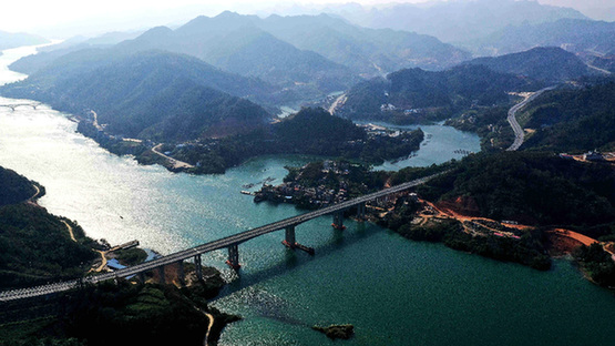 廣西60周年大慶重大公益性項目陸續(xù)建成并投入使用。圖為項目之一的橫跨紅水河的廣西河池至百色高速公路。新華社發(fā)?。ǜ邧|風(fēng) 攝)