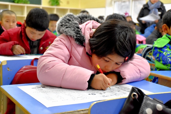 烏什·衢州小學(xué)學(xué)生在課堂上做題。記者 段敏夫 攝