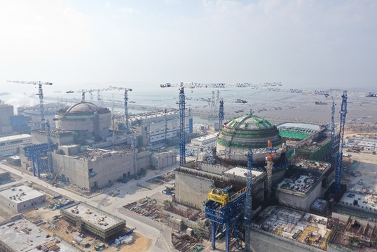 圖為2019年1月31日航拍的中核集團(tuán)福清核電5號(hào)機(jī)組(左)和6號(hào)機(jī)組(右)。記者 薛晨 攝