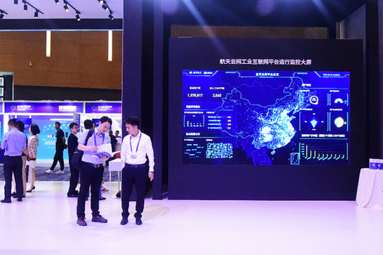 近日,在成都舉行的2019世界工業(yè)互聯(lián)網(wǎng)大會上,參會代表在會場展廳參觀。記者 謝佼 攝