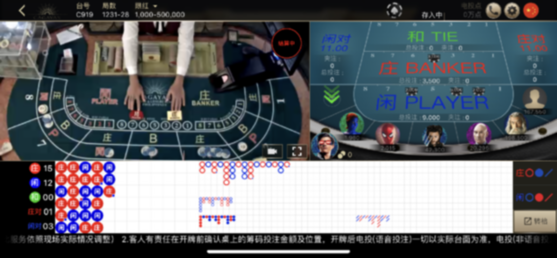 盡管賭場遠(yuǎn)在菲律賓和柬埔寨,但身在中國大陸的賭客只要打開電腦和手機(jī)登錄其平臺,就可看到賭場全景,包括賭場荷官(發(fā)牌員)現(xiàn)場發(fā)牌的實(shí)況。點(diǎn)擊放大后,連荷官面前兩側(cè)擺放的“閑”和“莊”都可一覽無余。賭客觀看同步視頻現(xiàn)場,同時下注,太陽城的電投員與賭客通話予以確認(rèn),如身臨其境。