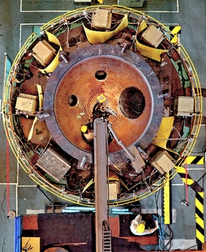據(jù)哈電集團(tuán)技術(shù)人員介紹,這個(gè)高約25米、最大外徑約4.5米、總重接近500噸的蒸汽發(fā)生器,是國(guó)家科技重大專項(xiàng)“大型先進(jìn)壓水堆及高溫氣冷堆核電站”的關(guān)鍵設(shè)備之一,被稱為“核電之肺”。其作用是將核反應(yīng)堆的熱量轉(zhuǎn)換成接近600攝氏度的水蒸氣,推動(dòng)汽輪發(fā)電機(jī)組產(chǎn)生電能。