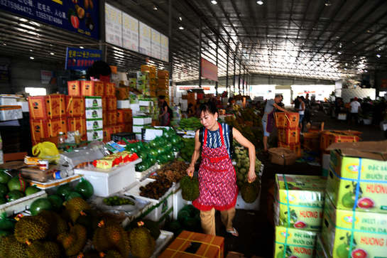 走在憑祥街頭小巷,操著各地方言的人們川流不息,使人絲毫感覺不出這只是一個(gè)10多萬(wàn)人口的邊境小縣,來自不同地方的人們做各樣生意。滿載火龍果、榴蓮等水果及其他貨物的大貨車排如長(zhǎng)龍,各式各樣的東南亞食品、家具在此集散。