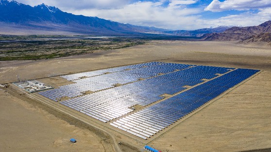圖為由深圳援建的新疆塔什庫爾干塔吉克自治縣2萬千瓦集中式扶貧光伏電站。記者 胡虎虎 攝