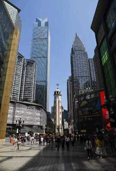 更大的變化始于1997年。那一年,重慶成為中央直轄市,以解放碑為中心建起了西部第一條商業(yè)步行街——解放碑中心購(gòu)物廣場(chǎng)。