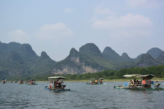 桂林市漓江岸邊的村民在從事竹筏旅游業(yè)。記者 董振國(guó) 攝