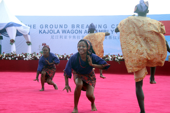 中國土木工程集團(tuán)有限公司(中土集團(tuán))投資建設(shè)的尼日利亞首個鐵路車輛組裝廠9日在尼西南部奧貢州卡焦拉鎮(zhèn)舉行奠基儀式。圖為在尼日利亞奧貢州卡焦拉鎮(zhèn),當(dāng)?shù)匮輪T在奠基儀式上表演傳統(tǒng)舞蹈。