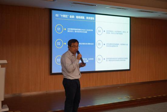 之后,浙江清華長三角研究院產(chǎn)城融合研究中心主任陳偉就“十四五”宏觀經(jīng)濟形勢以及長三角一體化戰(zhàn)略為主題內(nèi)容進行分享。內(nèi)容圍繞“十四五”宏觀形勢研判和十個“關(guān)注點”的解答兩方面展開,深入分析了“十四五”及“兩個一百年”的歷史大背景下,全球經(jīng)濟格局調(diào)整、秩序重構(gòu),中國經(jīng)濟進入“新常態(tài)”,經(jīng)濟發(fā)展邁入“5”時代,市場消費結(jié)構(gòu)發(fā)生深刻變化,產(chǎn)業(yè)創(chuàng)新整體穩(wěn)步提升、局部重點突破,國企統(tǒng)籌逐步強化,監(jiān)管漸趨靈活的新趨勢。