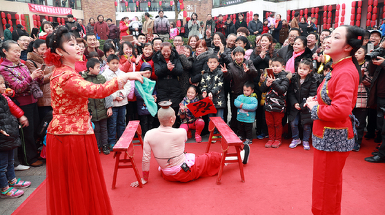 近年來(lái),瀘州市江陽(yáng)區(qū)為大力弘揚(yáng)社會(huì)主義核心價(jià)值觀,鞏固全國(guó)文明城市成果,不斷豐富社區(qū)黨員群眾的精神文化生活。圖為在江陽(yáng)區(qū)張壩景區(qū)開(kāi)展“三下鄉(xiāng)”文藝活動(dòng)。
