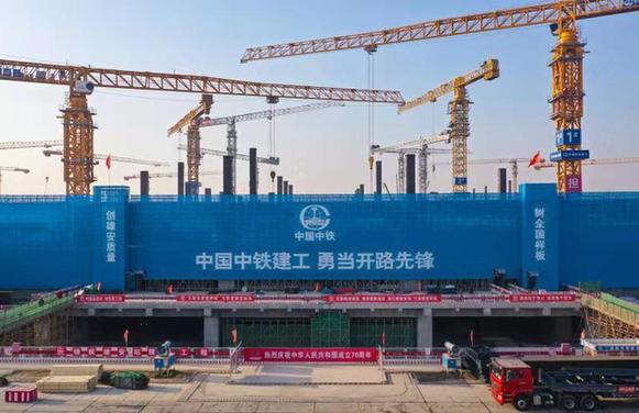 京雄城際鐵路雄安站施工現(xiàn)場(chǎng)。中鐵建工集團(tuán)供圖