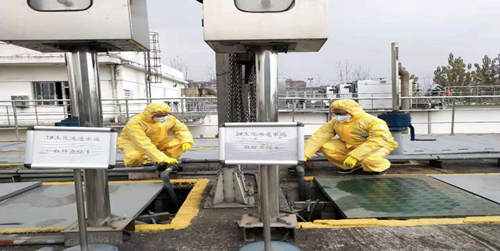 成都環(huán)境投資集團(tuán)有限公司一線員工在生化池進(jìn)行點(diǎn)檢及過程采樣