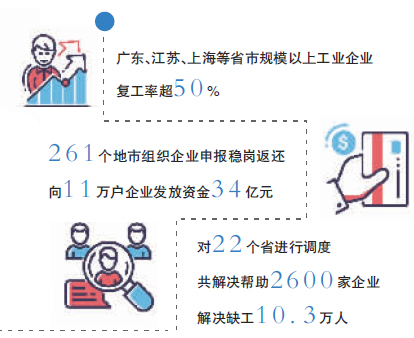 自上周起,全國各地復(fù)工復(fù)產(chǎn)陸續(xù)展開。當(dāng)前,企業(yè)、個(gè)人還面臨一系列用工、失業(yè)保障等方面的挑戰(zhàn),在國務(wù)院聯(lián)防聯(lián)控機(jī)制2月19日召開的新聞發(fā)布會上,人社部失業(yè)保險(xiǎn)司司長桂楨透露,在支持企業(yè)復(fù)工復(fù)產(chǎn)、渡過難關(guān)方面,人社部已會同財(cái)政部出臺新舉措,加大支持力度,擴(kuò)大中小微企業(yè)政策受益面,降低政策門檻,放寬申領(lǐng)條件。同日,工信部辦公廳發(fā)出的通知要求,運(yùn)用新一代信息技術(shù)加快企業(yè)復(fù)工復(fù)產(chǎn)。支持互聯(lián)網(wǎng)交通、物流、快遞等生產(chǎn)性服務(wù)企業(yè)率先復(fù)工復(fù)產(chǎn)。