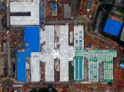 在武漢火神山、雷神山醫(yī)院建設中,基于北斗衛(wèi)星導航系統(tǒng)的高精度定位設備火速馳援,確保工地大部分放線測量一次完成。這是無人機拍攝的武漢火神山醫(yī)院。記者 李賀 攝