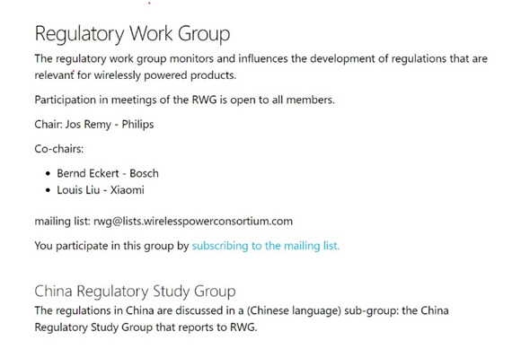 在剛結束的無線充電標準聯(lián)盟(WPC)2020年第1次全會上,來自小米集團技術委員會標準與新技術部專家劉洋成功當選聯(lián)盟RWG(Regulation Work Group)聯(lián)席主席,RWG組共設一位主席和兩位聯(lián)席主席,小米是中國手機公司里唯一有擔任主席職位的公司。