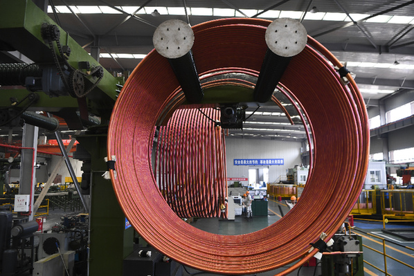 工人在位于重慶萬州的金龍銅管集團生產車間工作。記者 王全超 攝
