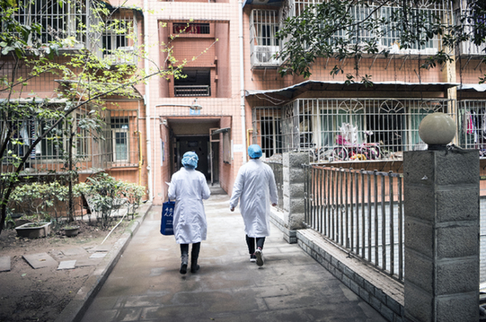 疫情期間招商局重慶長航醫(yī)院醫(yī)護人員下社區(qū)排查。企業(yè)供圖