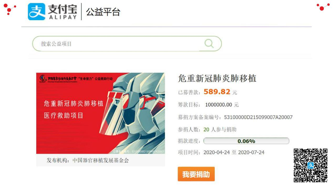 ????該項(xiàng)目擬使用自有資金啟動(dòng)項(xiàng)目推進(jìn)的同時(shí)開展公募籌集醫(yī)療救助金,可在支付寶公益平臺(tái)查詢。