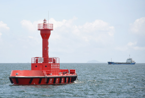 采用北斗航標(biāo)遙測(cè)遙控裝置的一艘大型燈船投放在珠江口擔(dān)桿水道。