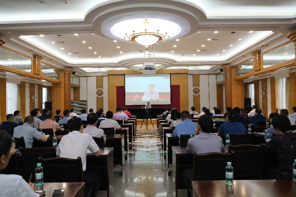 自治區(qū)國(guó)資委黨委書(shū)記、主任李杰云向全區(qū)國(guó)資國(guó)企干部職工作深化改革加強(qiáng)管理政策解讀。(自治區(qū)國(guó)資委供圖)