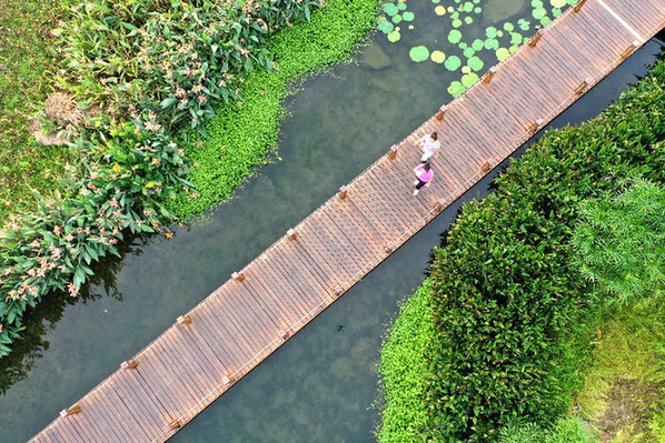 市民在南寧市那考河濕地公園內(nèi)游玩。記者 周華 攝