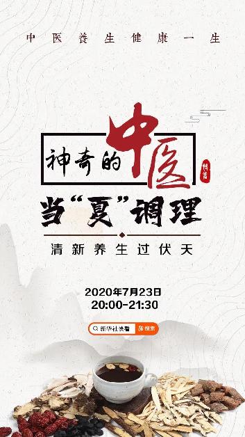 7月23日20:00~21:30,新華社“快看”快手直播間為您帶來(lái)《神奇的中醫(yī)》系列直播節(jié)目第一期——“當(dāng)'夏'調(diào)理,清心養(yǎng)生過(guò)伏天”。本次直播將邀請(qǐng)中醫(yī)領(lǐng)域大咖帶大家了解中醫(yī)養(yǎng)顏、 頸椎病防治和中醫(yī)食療等。