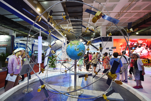 圖為此前參觀者在第二十屆中國北京國際科技產(chǎn)業(yè)博覽會上參觀展出的北斗衛(wèi)星導(dǎo)航系統(tǒng)模型。記者 鞠煥宗 攝